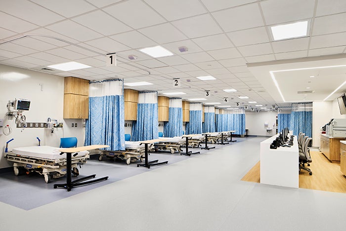 The design and construction teams worked to adapt plans without losing significant time in construction, allowing the first phase to be available for pandemic use when crucially needed. This reinforced the desire for spaces that could evolve with care delivery models, patient volumes and public health realities.