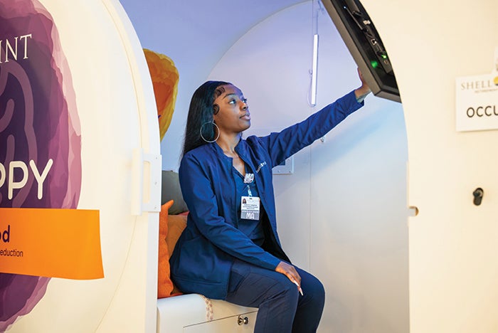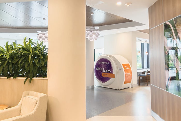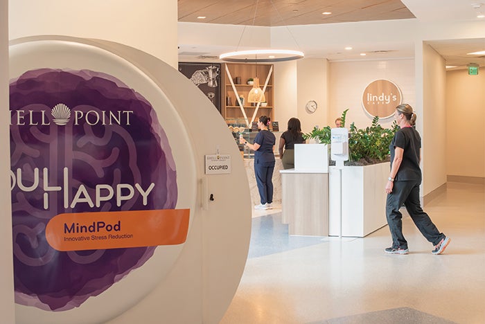 Shell Point Retirement Community in Fort Myers, Fla., partnered with The Center for Health Design to evaluate a neuroscience-informed, immersive relaxation kiosk designed to support well-being and reduce stress through calming imagery, guided breathing and binaural beats. Compact and self-contained, the prefabricated, modular Mind Pod was created by Florida-based Soul Happy to offer staff an easily accessible private space for restoration.