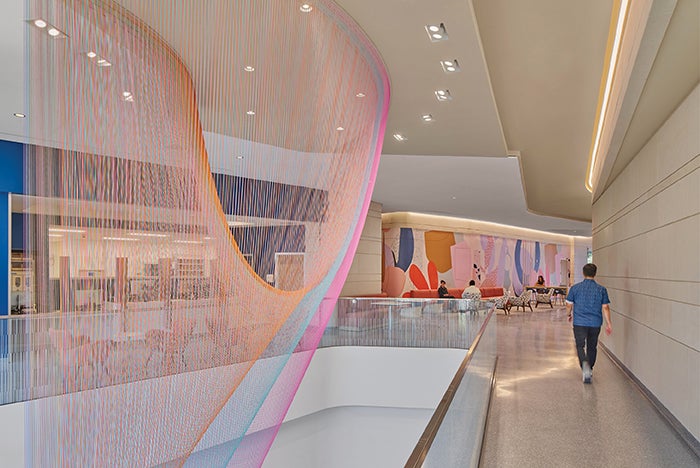 This eight-story, 352,000-square-foot facility is now the largest building on City of Hope’s Duarte, Calif., campus and anchors the site’s newly activated northeast corner. The project draws inspiration from the natural flow of water from the surrounding San Gabriel Mountains, appearing as a sculptural boulder within an “urban river wash” landscape.