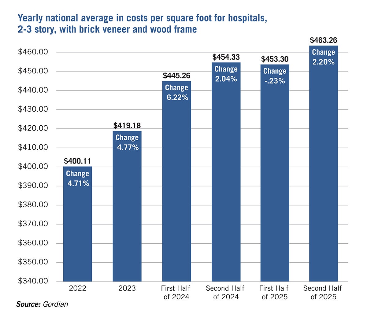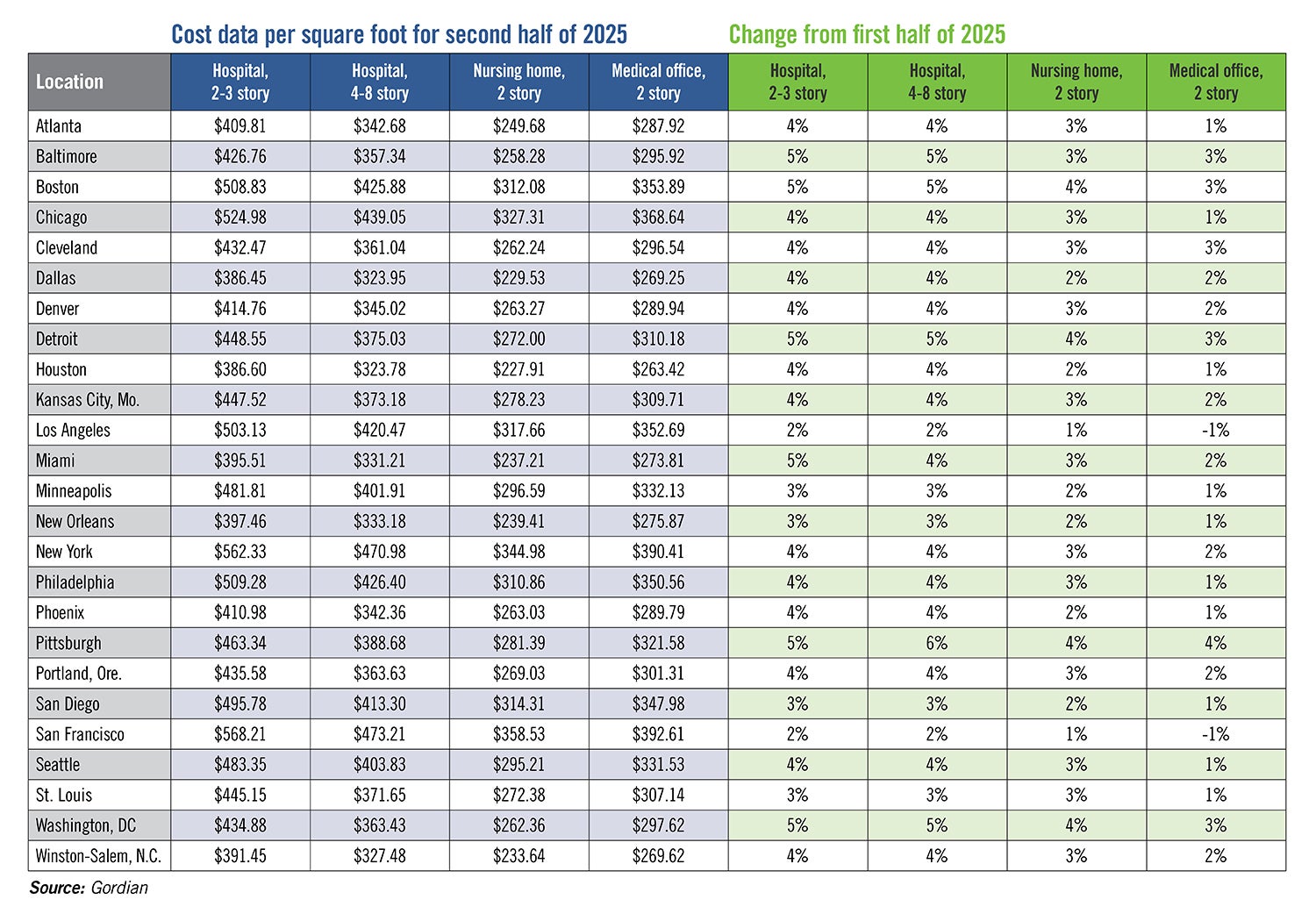 Based on square foot estimating data from international construction data and services firm Gordian, these increases can be seen consistently around the country.